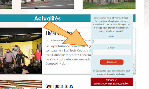Après avoir entré votre adresse électronique et votre nom, vous recevrez une notification à chaque fois qu’un article sera posté sur le site. De quoi être toujours au courant de l’actualité de Haut-Bocage !
