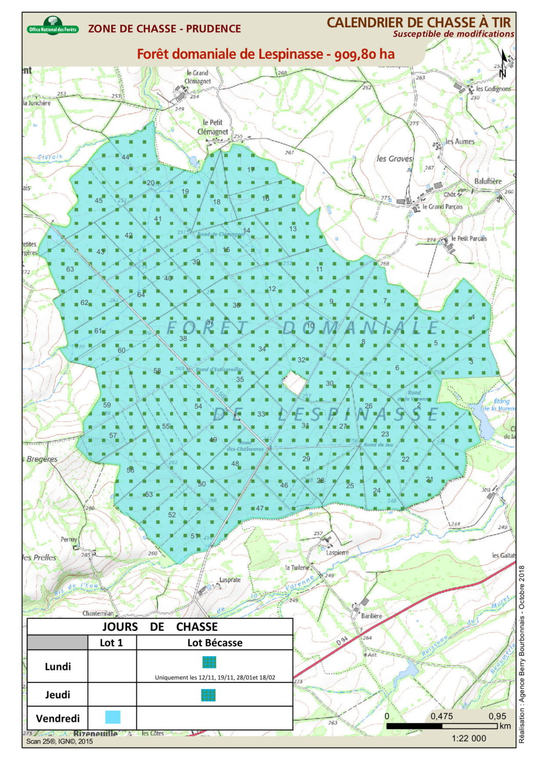 Vous trouverez ci-dessous le calendrier de la chasse à Tir pour la Forêt de Lespinasse à Louroux-Hodement.