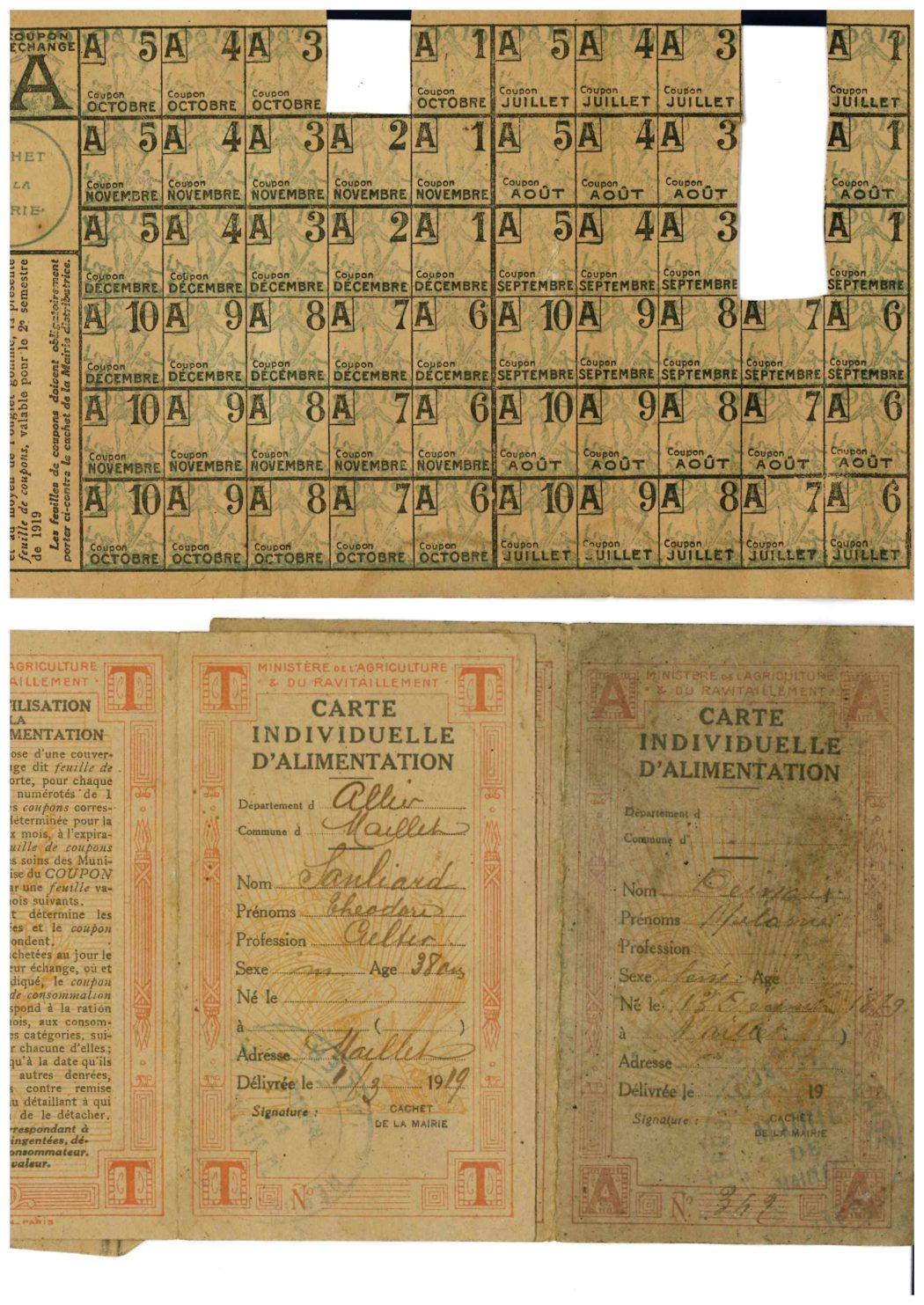 Lors de travaux dans le logement situé vers l’école, il a été trouvé par l’agent technique dans le plafond deux cartes de ravitaillement délivrées à deux Mailletois en 1919 et cachées surement par ses deux habitants.