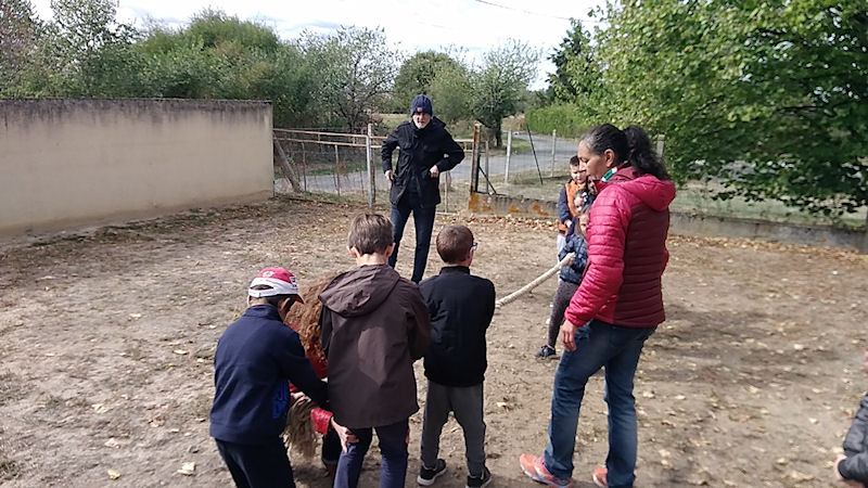 Elles ont ensuite expliqué les règles du Tire à la Corde et les enfants les ont mises en pratique.