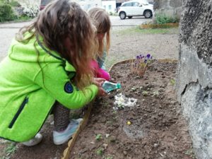 En avril, les enfants ont commencé une activité jardinage avec la création d’une serre pour y faire pousser fleurs et légumes. Cette activité se poursuit en mai avec des plantations dans les parterres de la commune.