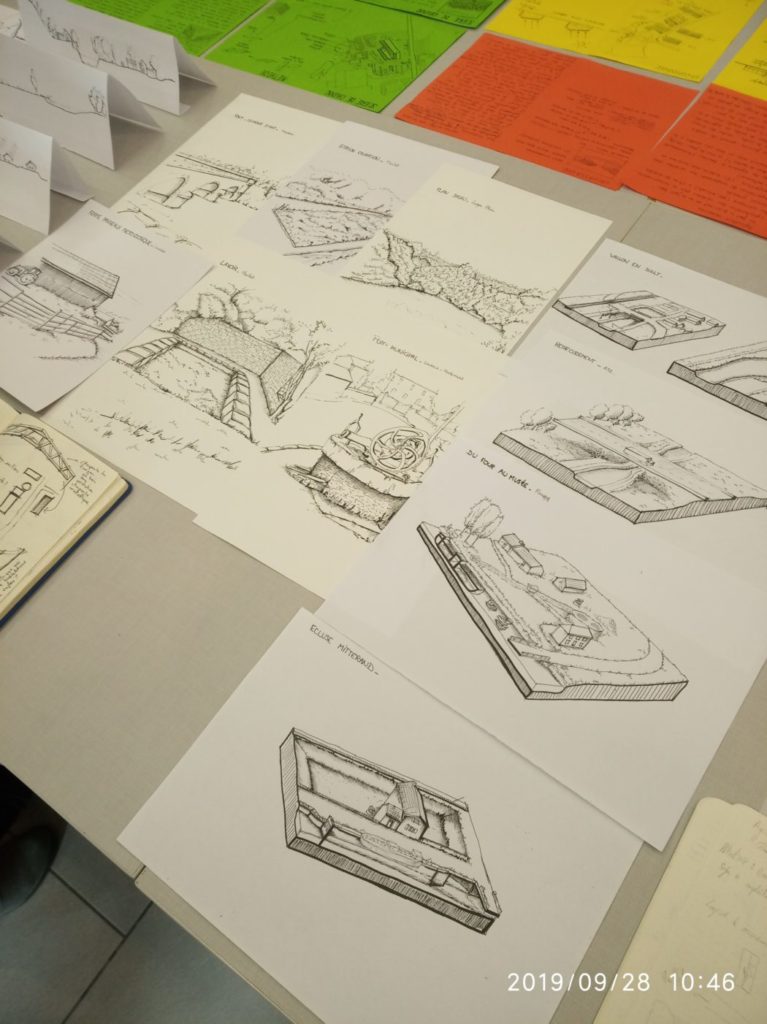 Les étudiants de l’Ecole Nationale Supérieure d’Architecture de Clermont Ferrand qui sont venus en semaine d’arpentage sur le territoire de la commune de HAUT-BOCAGE ont fait une restitution de leur prospection samedi 28 septembre dans la salle socio-culturelle de Givarlais.