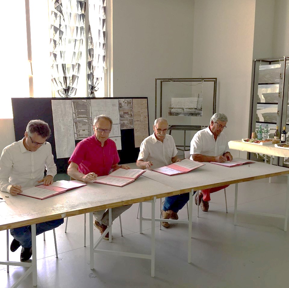 Les trois Maires de Haut-Bocage ont signé cette convention en présence de M. Simon TEYSSOU, directeur de l’école, M. Jean-Baptiste MARIE, Maitre de Conférence ainsi que M. Bertrand RETIF, Maitre de conférence associé, tous deux directeurs du projet de diagnostic de Territoire sur notre commune.