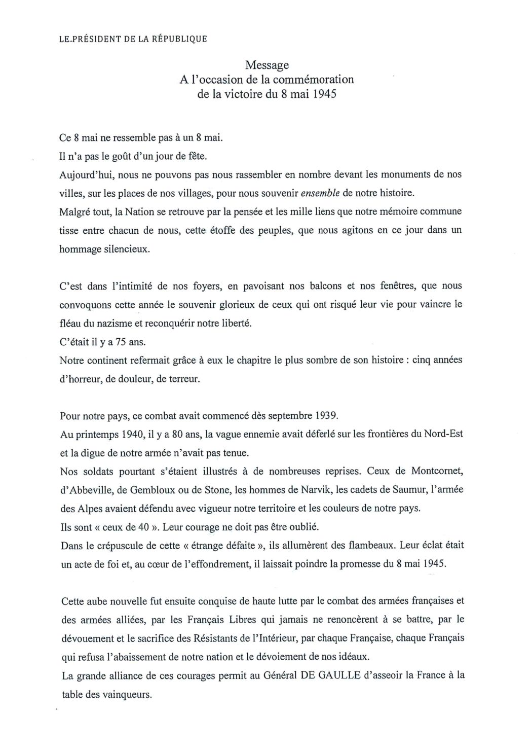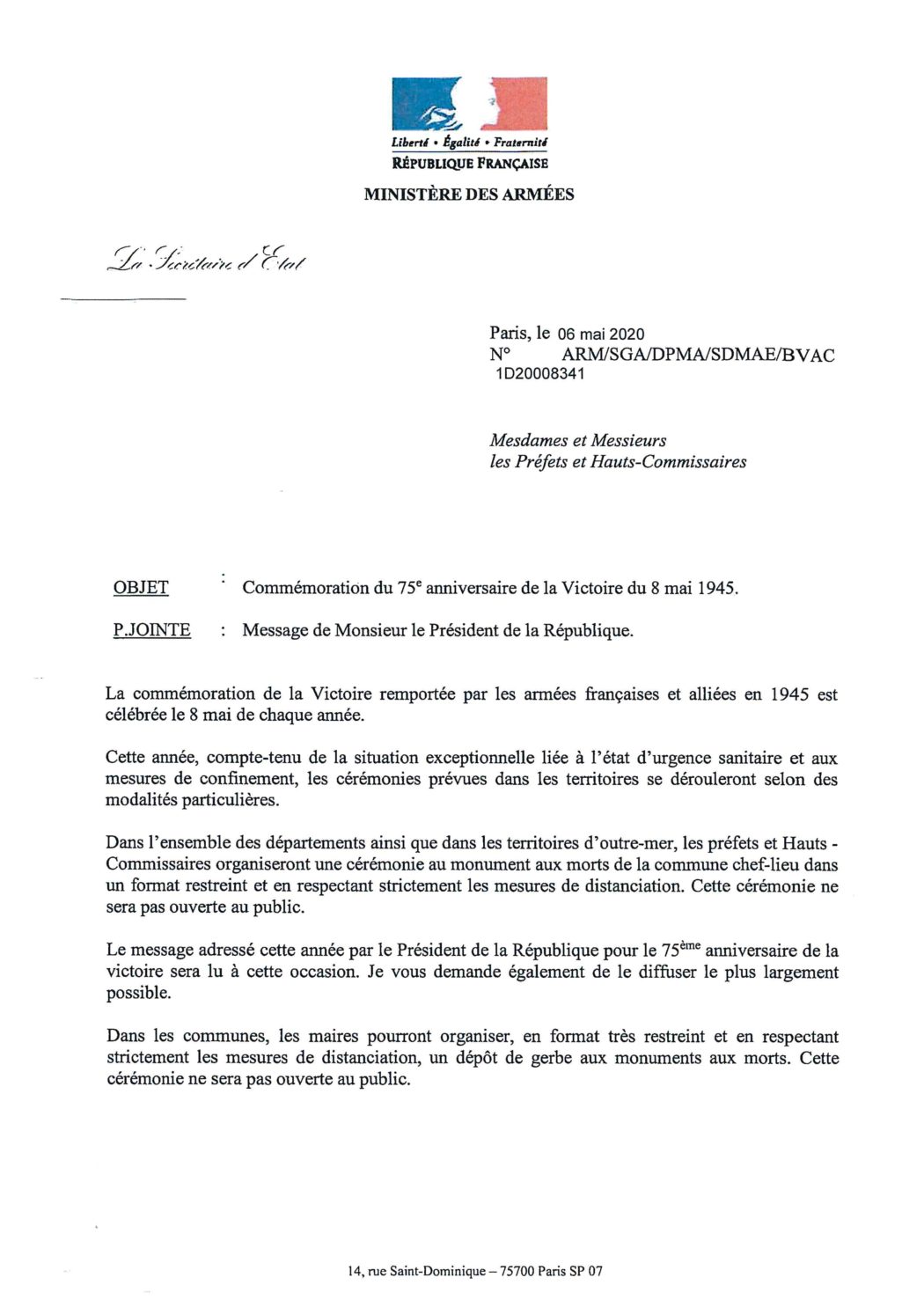 Ci dessous message de la secrétaire d’Etat aux Armées et message du Président de la République.