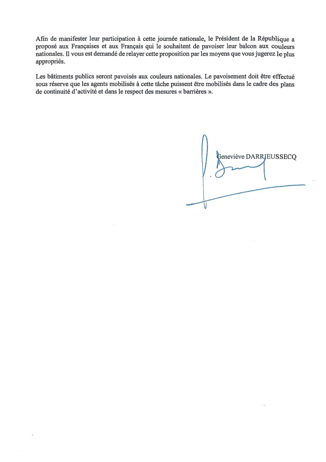 Les Françaises et les Français sont invités pour celles et ceux qui le souhaitent à pavoiser leur balcon ou fenêtre aux couleurs nationales.