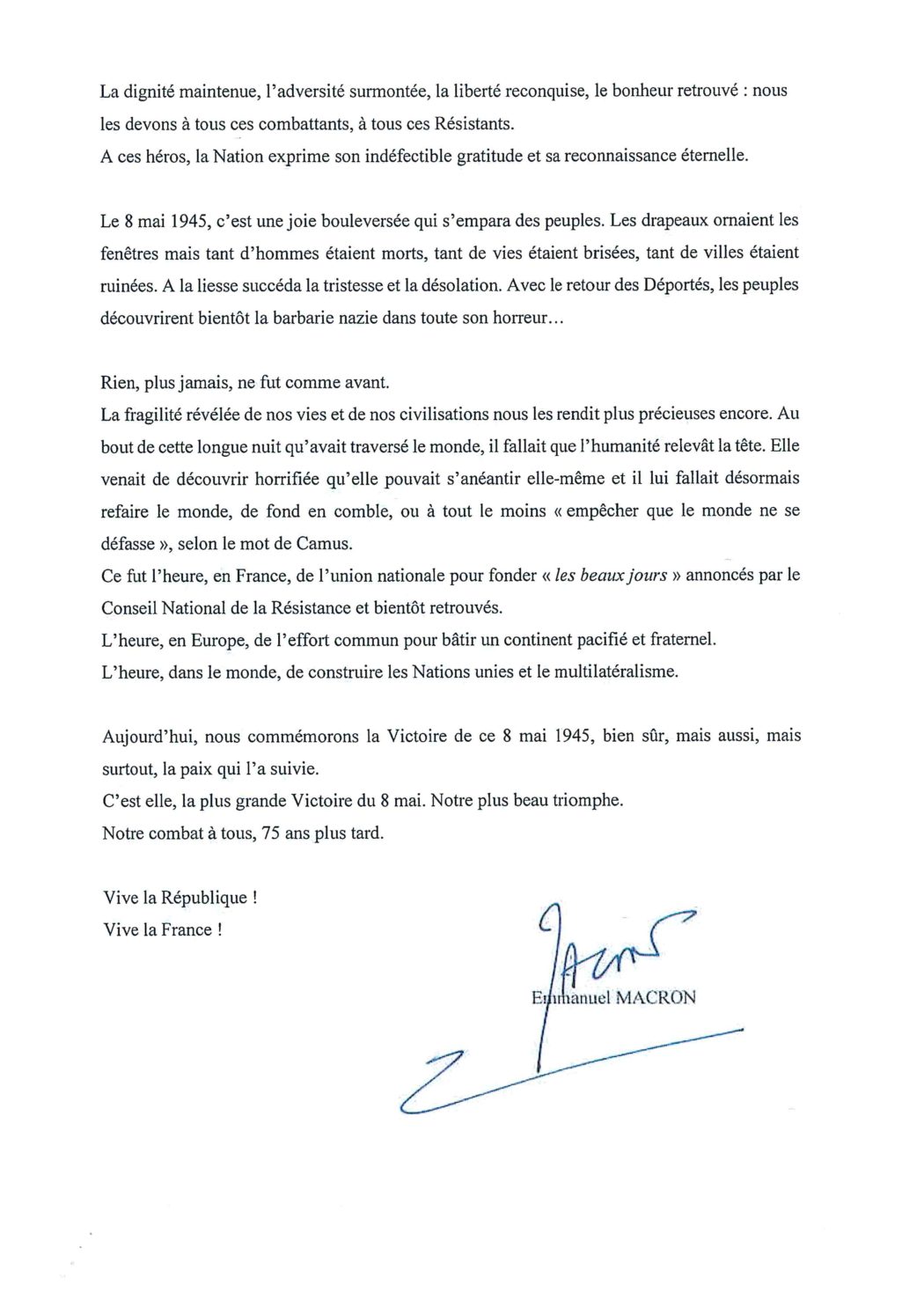 Les Maires accompagnés du porte drapeau et éventuellement des adjoints déposeront une gerbe aux monuments aux morts des trois communes déléguées et liront le message du Président de la République.