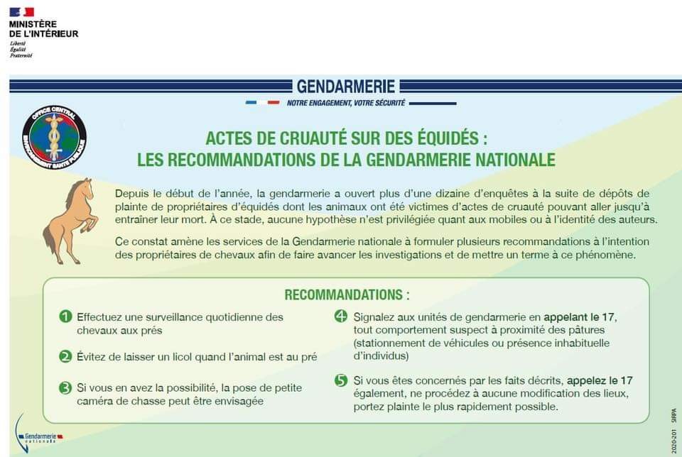 Recommandations gendarmerie – actes de cruauté envers les équidés