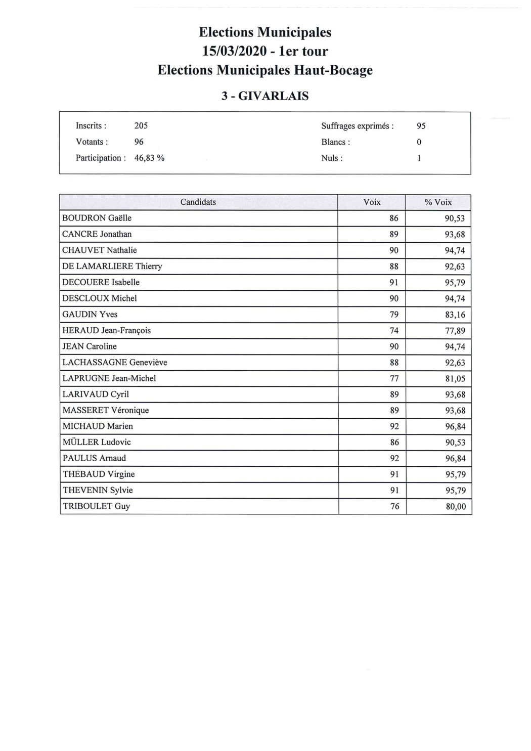 Résultats Elections Municipales 1er Tour Haut-Bocage