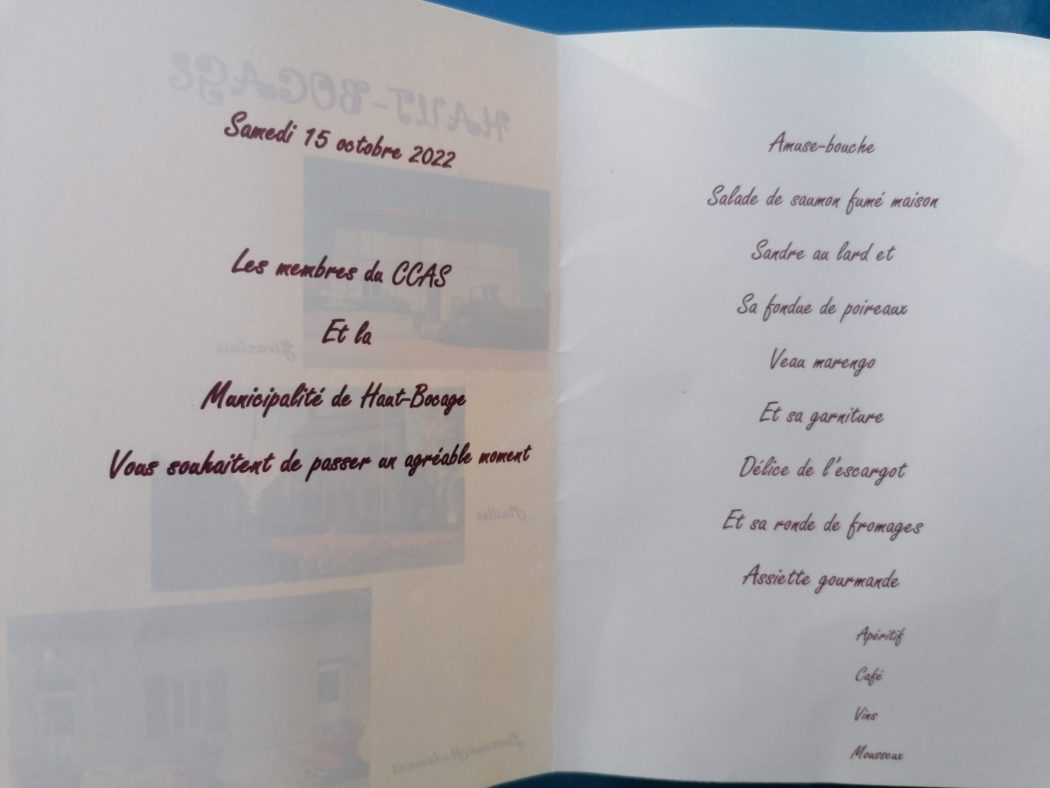 Le Centre Communal d’Action Sociale avait convié samedi 15 octobre dernier à la salle polyvalente de maillet les personnes de 60 ans et plus des trois communes déléguées au traditionnel repas qui n’avait pas eu lieu ces dernières années à cause de la pandémie.