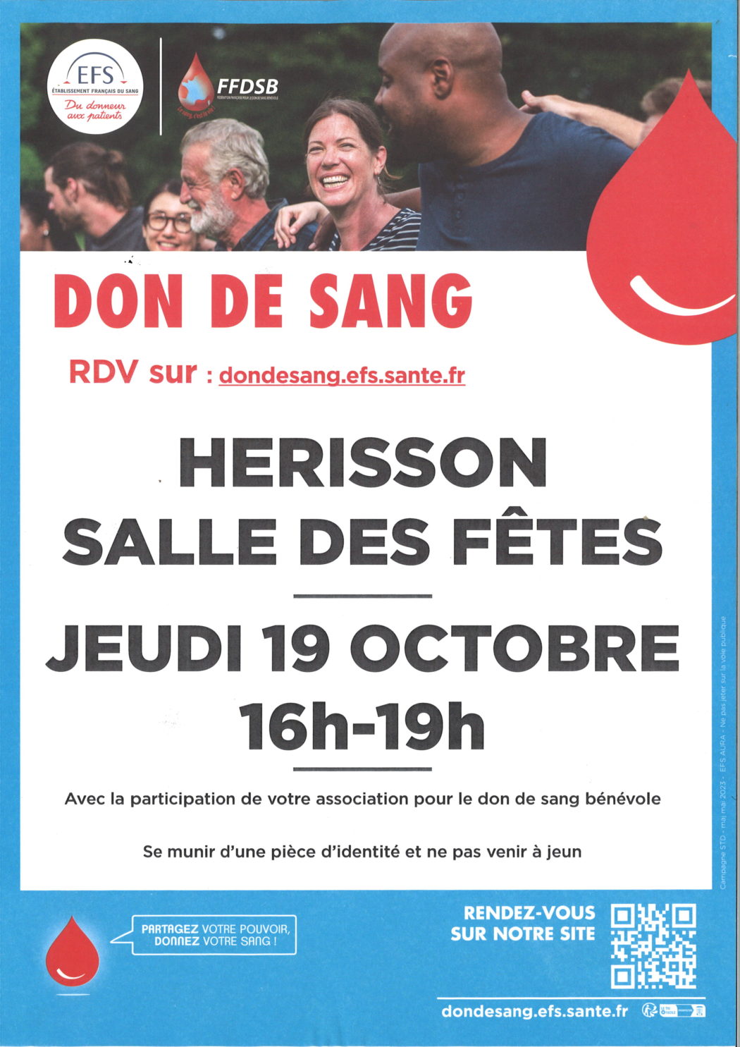 • Don du sang: Jeudi 20 Novembre à Hérisson