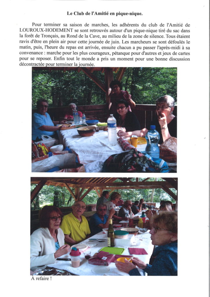 Le club de l’amitié de Louroux-Hodement en pique-nique