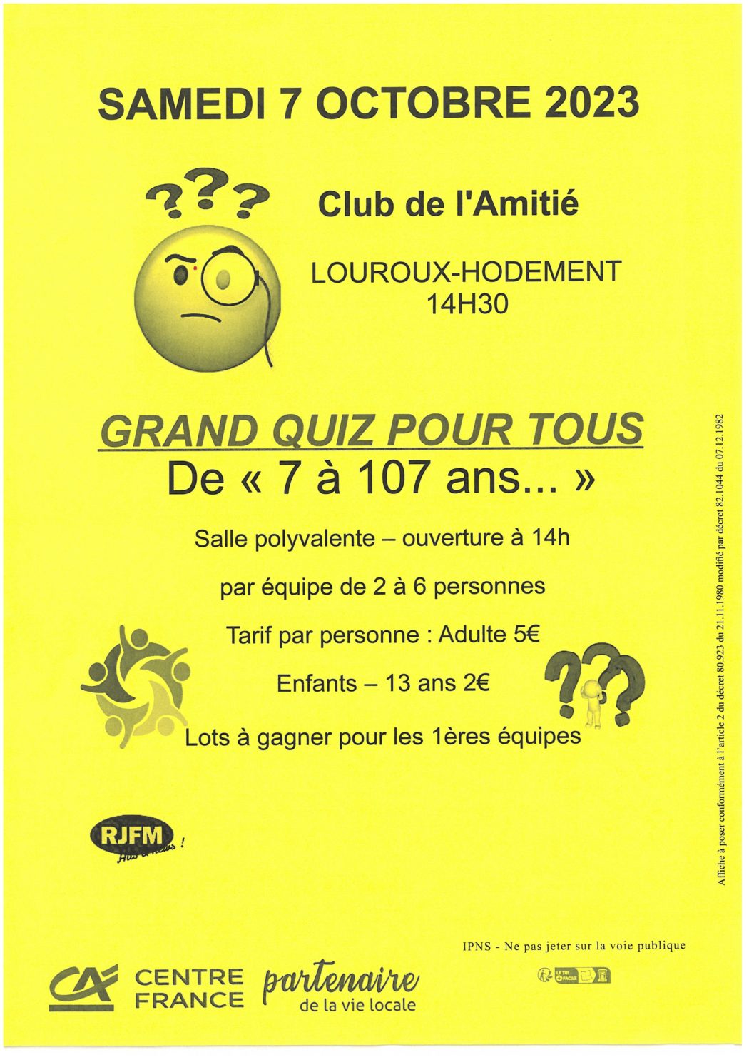 Venez nombreuses et nombreux à la salle polyvalente de Louroux-Hodement pour le grand quizz organisé par le club de l’amitié