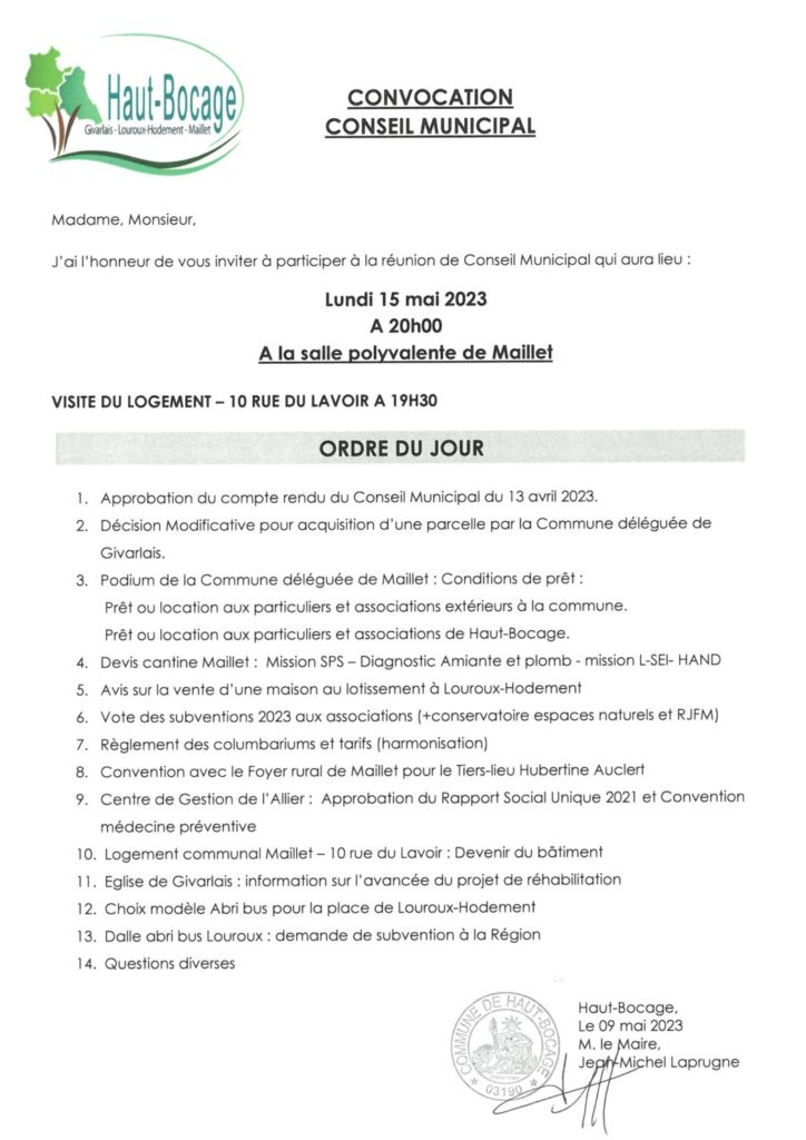 Accueil HAUT-BOCAGE Réunion du conseil municipal