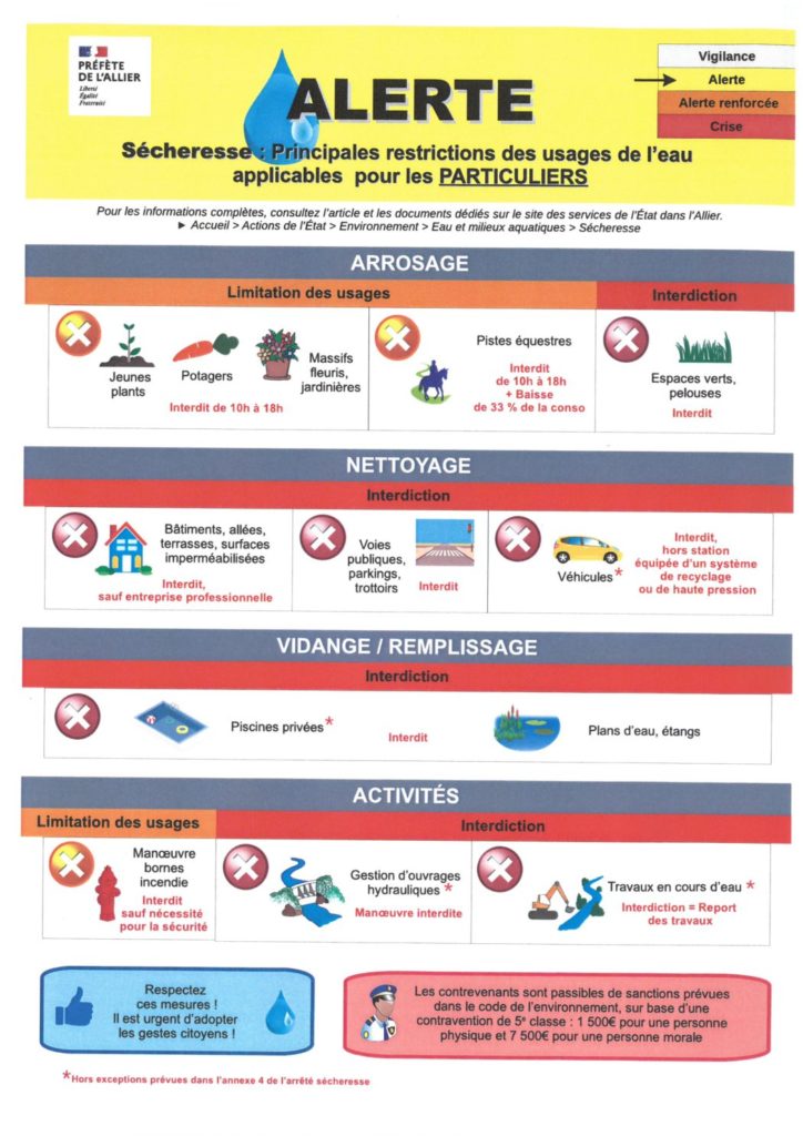 Sécheresse : Principales restrictions des usages de l’eau applicables pour les PARTICULIERS