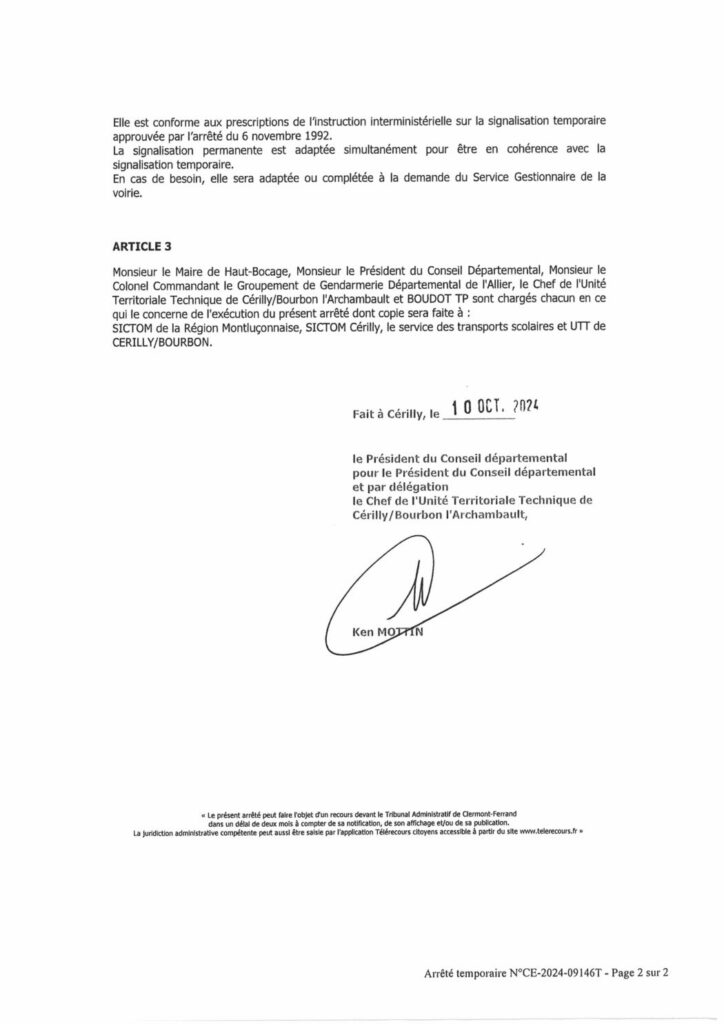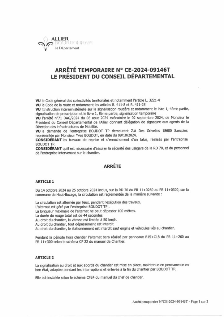 Arrêté travaux RD 70 – Montavent à Givarlais