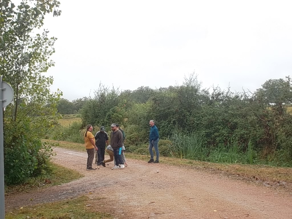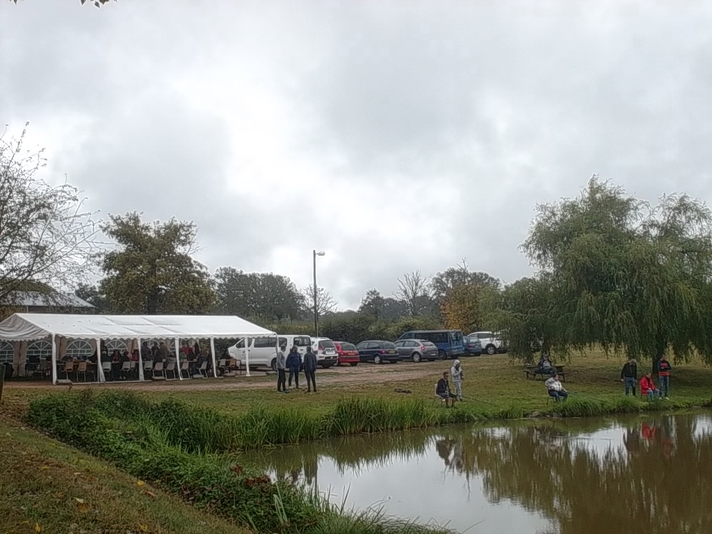 Toutes et tous se sont regroupés sous le barnum prêté par la Commune et installé par la société de pêche pour l’heure du pique-nique à 12h.