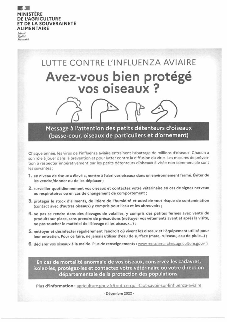 Lutte contre l’influenza aviaire