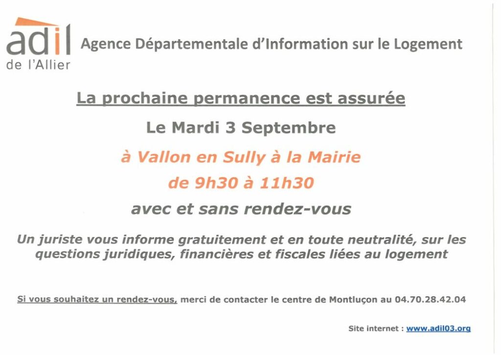 Permanence de l’ADIL à Vallon en Sully