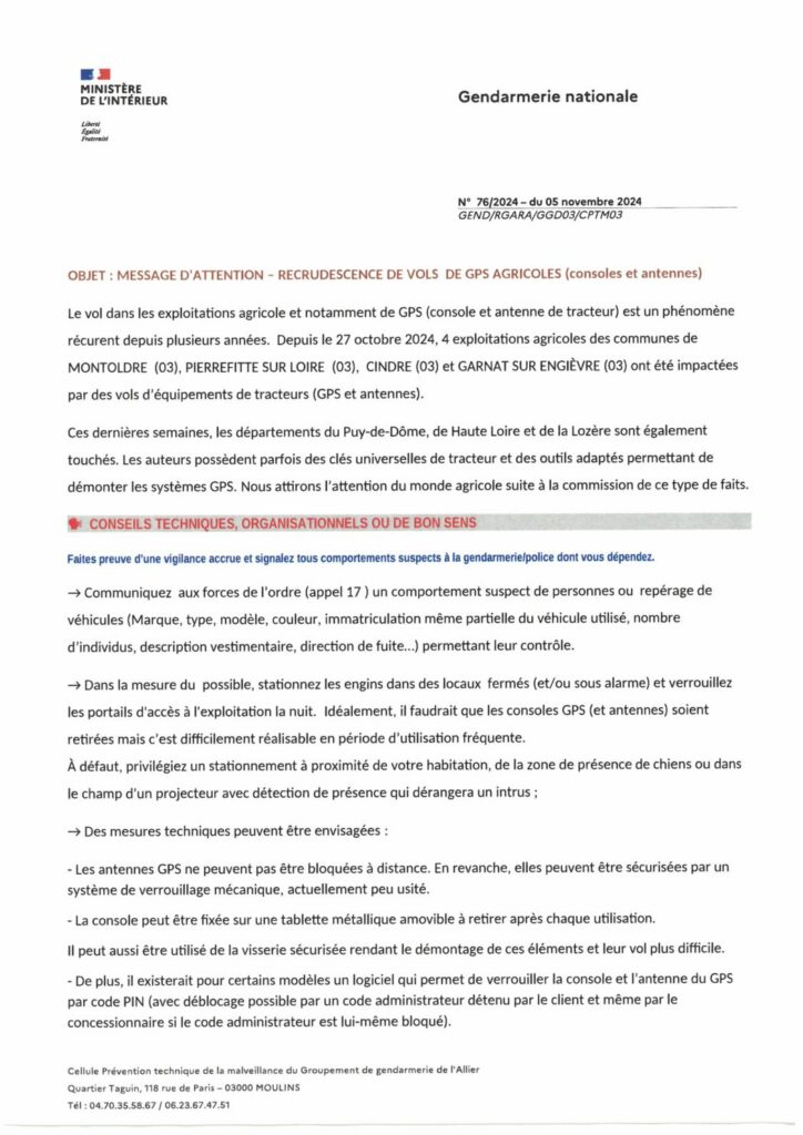 Recrudescence vols GPS agricoles