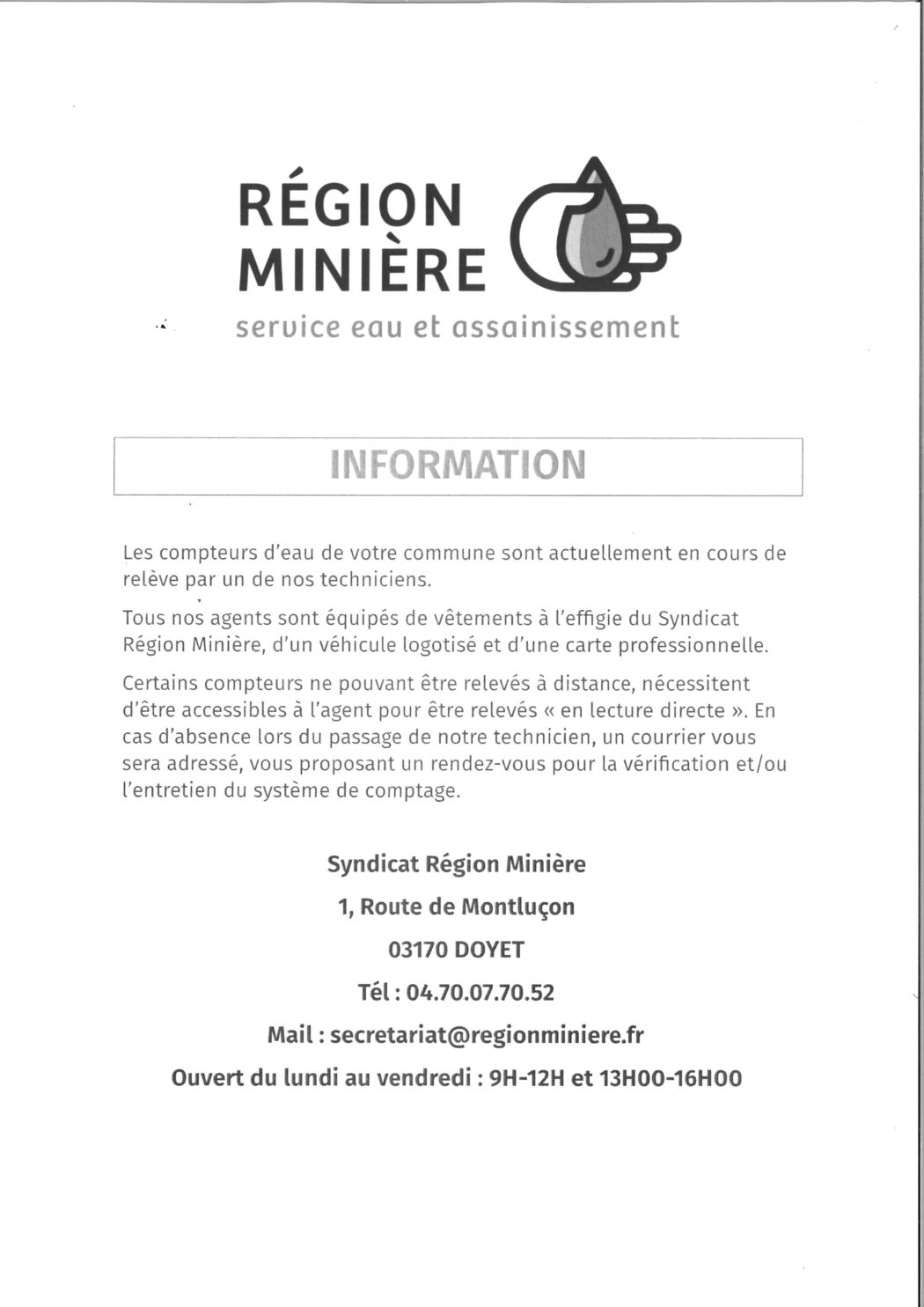 Relevé des compteurs d’eau par le SIVOM Région Minière