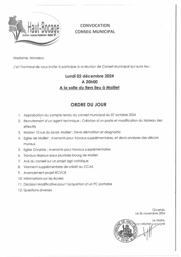 Prochain Conseil Municipal Haut Bocage