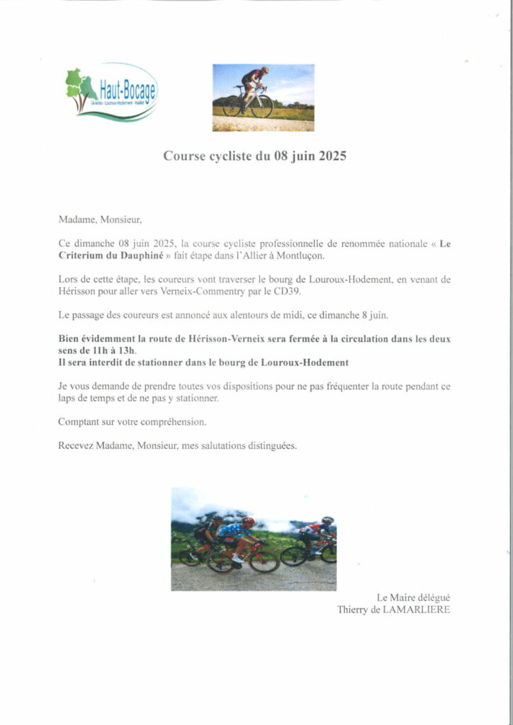 Criterium du Dauphiné dimanche 8 juin, à Louroux
