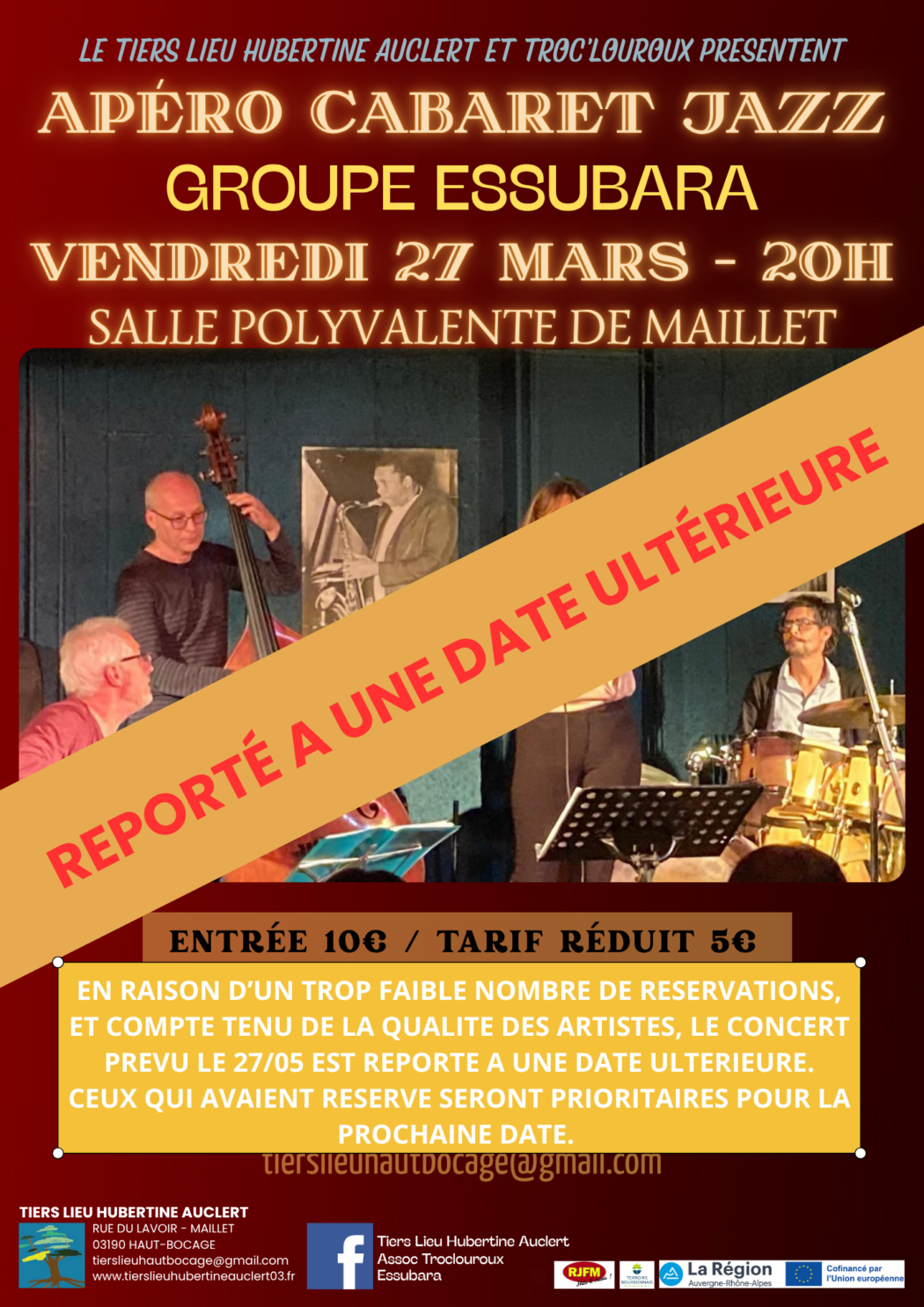 L’apéro cabaret Jazz est malencontreusement reporté ultérieurement.