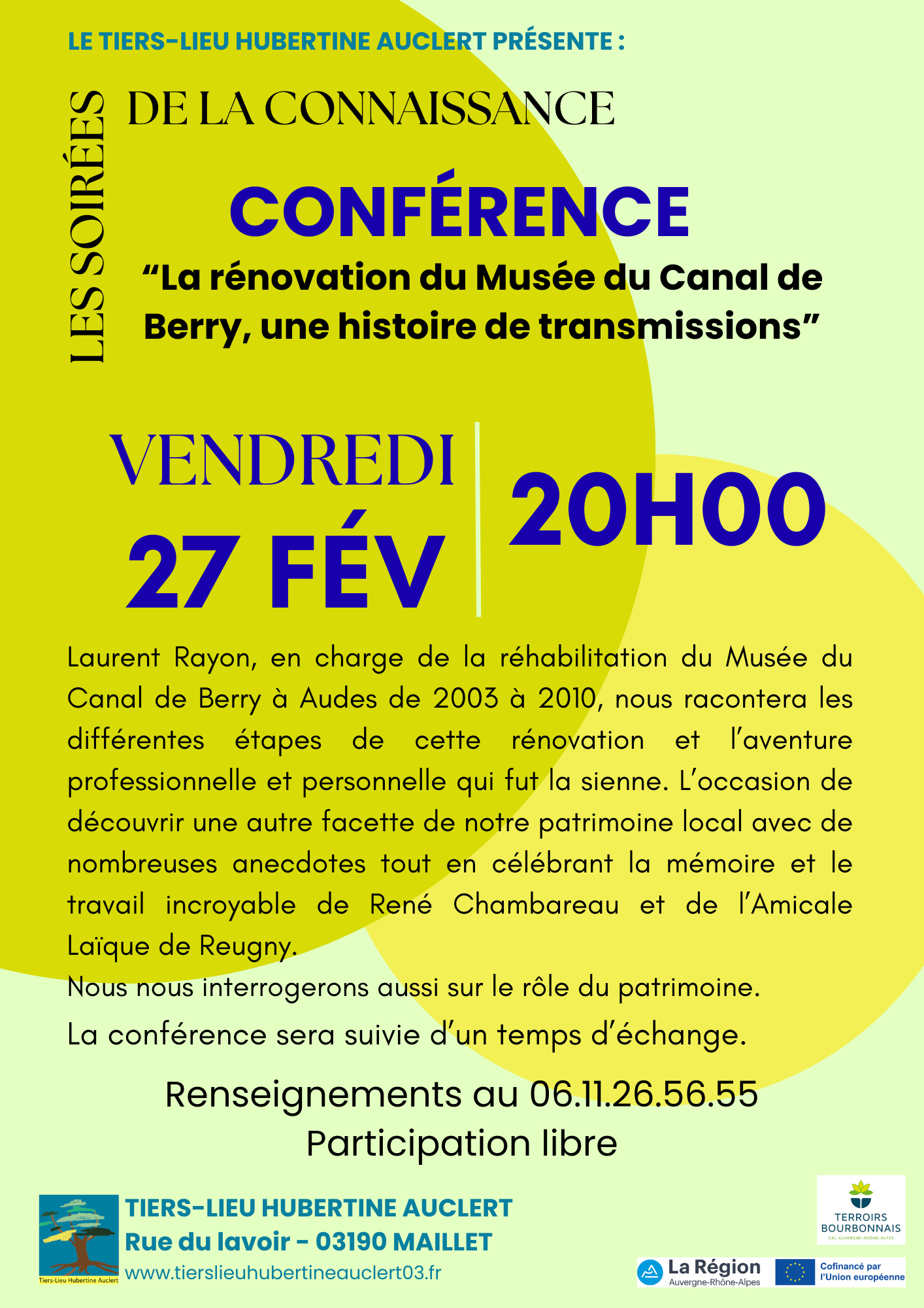 Cette conférence aura lieu au Tiers Lieu Hubertine AUCLERT à Maillet.