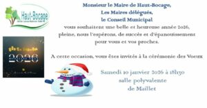 - Voeux de Haut-Bocage Samedi 10 Janvier à 18 h 30 à Maillet