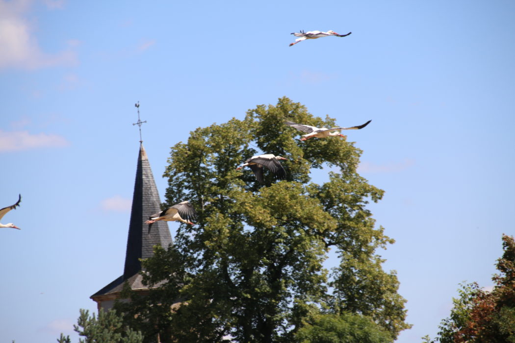 35 cigognes ont atterris, le temps d’une pause, dans un champ de Givarlais… Quel spectacle !